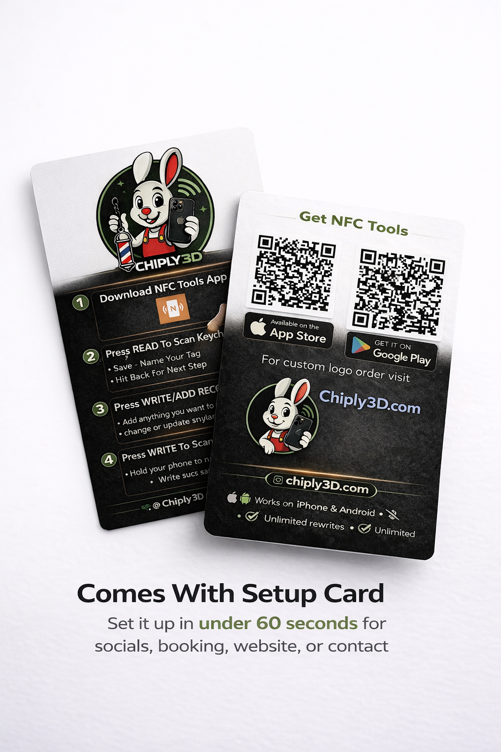 Every keychain comes with a simple instruction card so you can set it up in under 1 minute to anything you want — your social media, website, booking page, phone number, or contact info.